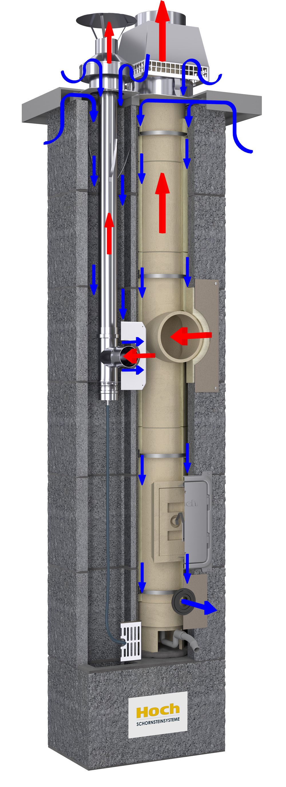 Der Hoch-DUO-LAS-Schornstein ist ein speziell für raumluftunabhängige Feuerstätten ausgelegter universeller dreischaliger Schornstein zu dessen Herstellung TÜV-geprüfte Keramikrohre des renommierten deutschen Herstellers HART Keramik aus Waldsassen mit mehr als 300 Jahren Tradition zum Einsatz kommen.