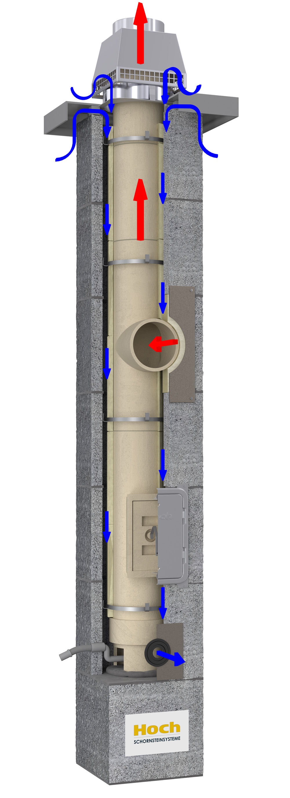 Der Hoch-Universal-LAS-Schornstein ist ein speziell für raumluftunabhängige Feuerstätten ausgelegter universeller dreischaliger Schornstein, bei dessen Herstellung TÜV-geprüfte Keramikrohre des renommierten deutschen Herstellers HART Keramik aus Waldsassen mit mehr als 300 Jahren Tradition zum Einsatz kommen.